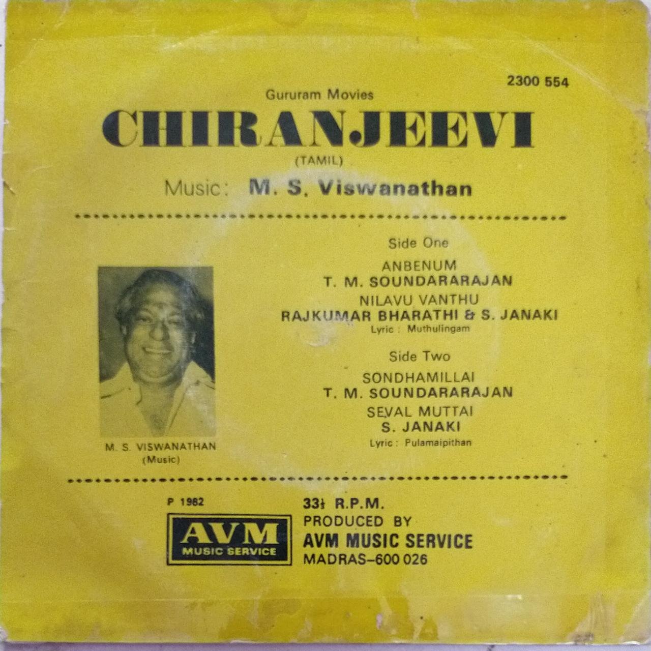 Chiranjeevi Tamil Film EP Vinyl Record by M.S.Viswanathan