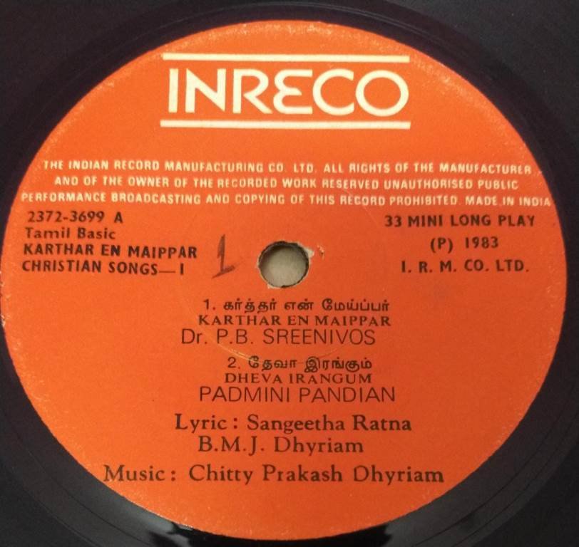 Christian devotional Songs Tamil EP Vinyl Record 2372 3699