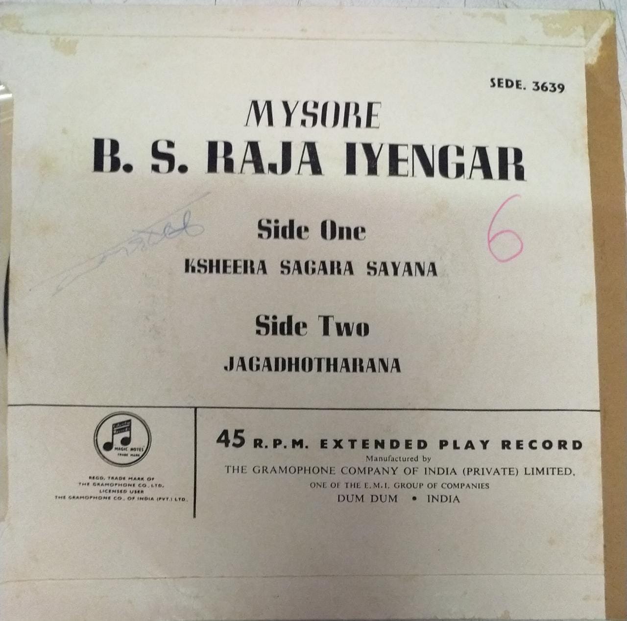 Music by : Mysore B S Raja Iyengar