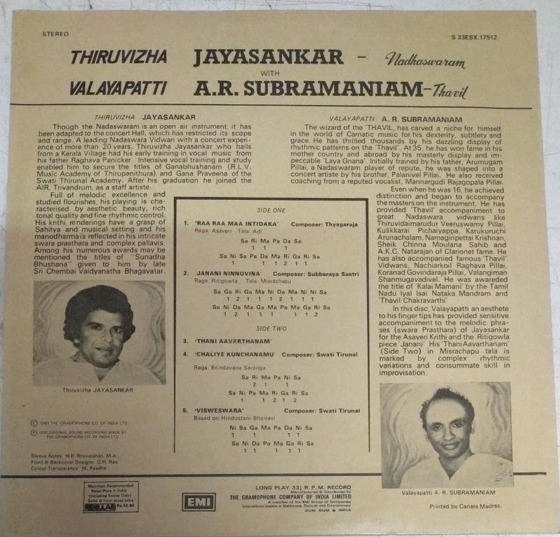Classical Instrumental Nadhaswaram & Thavil LP Vinyl Record