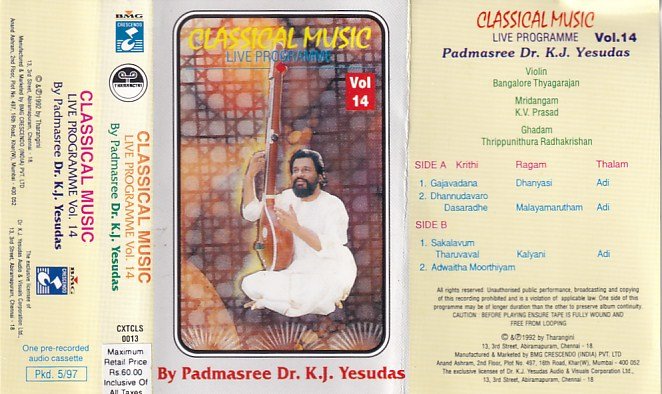 Classical Music Live in concert Audio cassette by KJ Jesudass