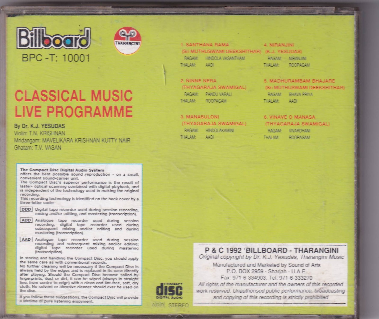 Title: Classical Music Live Programme by KJ Yesudas Vol. 1