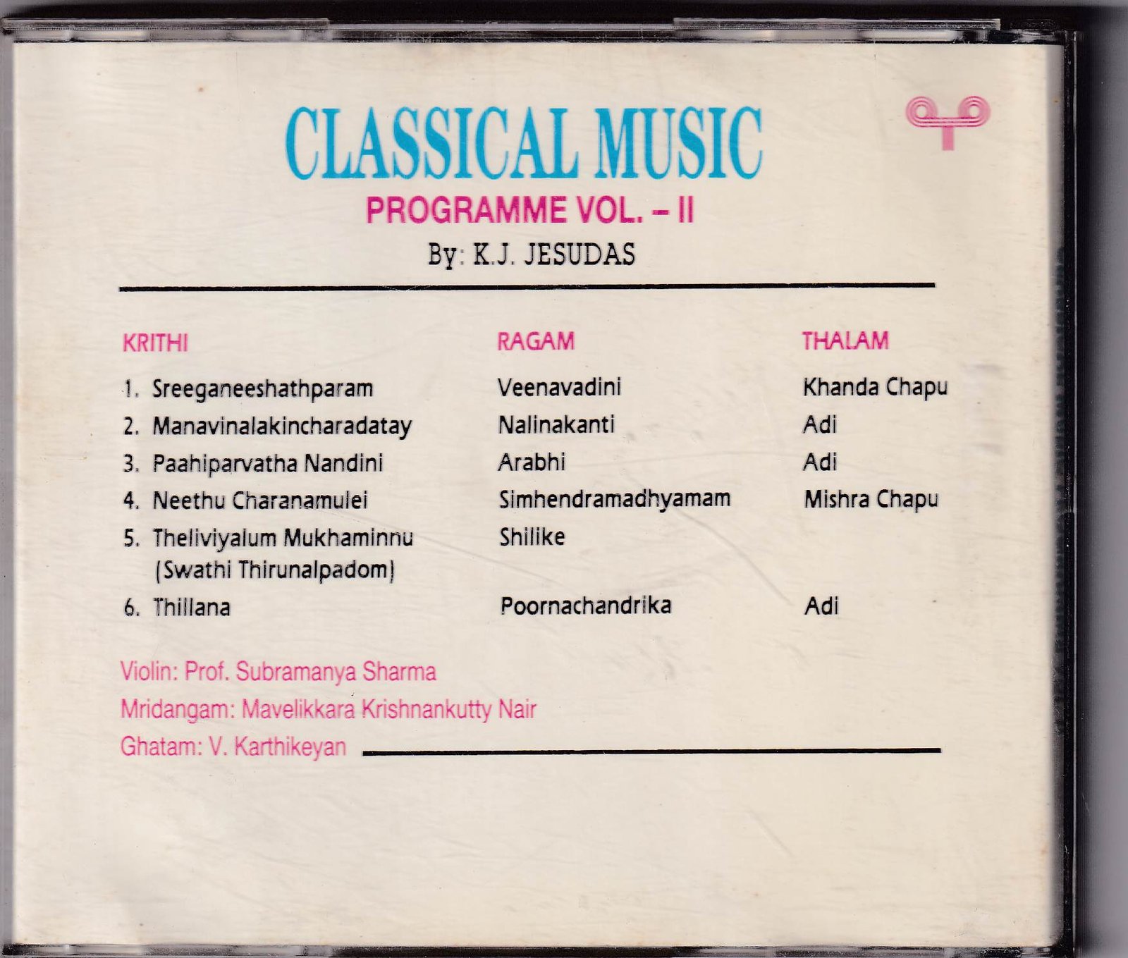 Title: Classical Music Programme Vol. II by KJ Yesudas