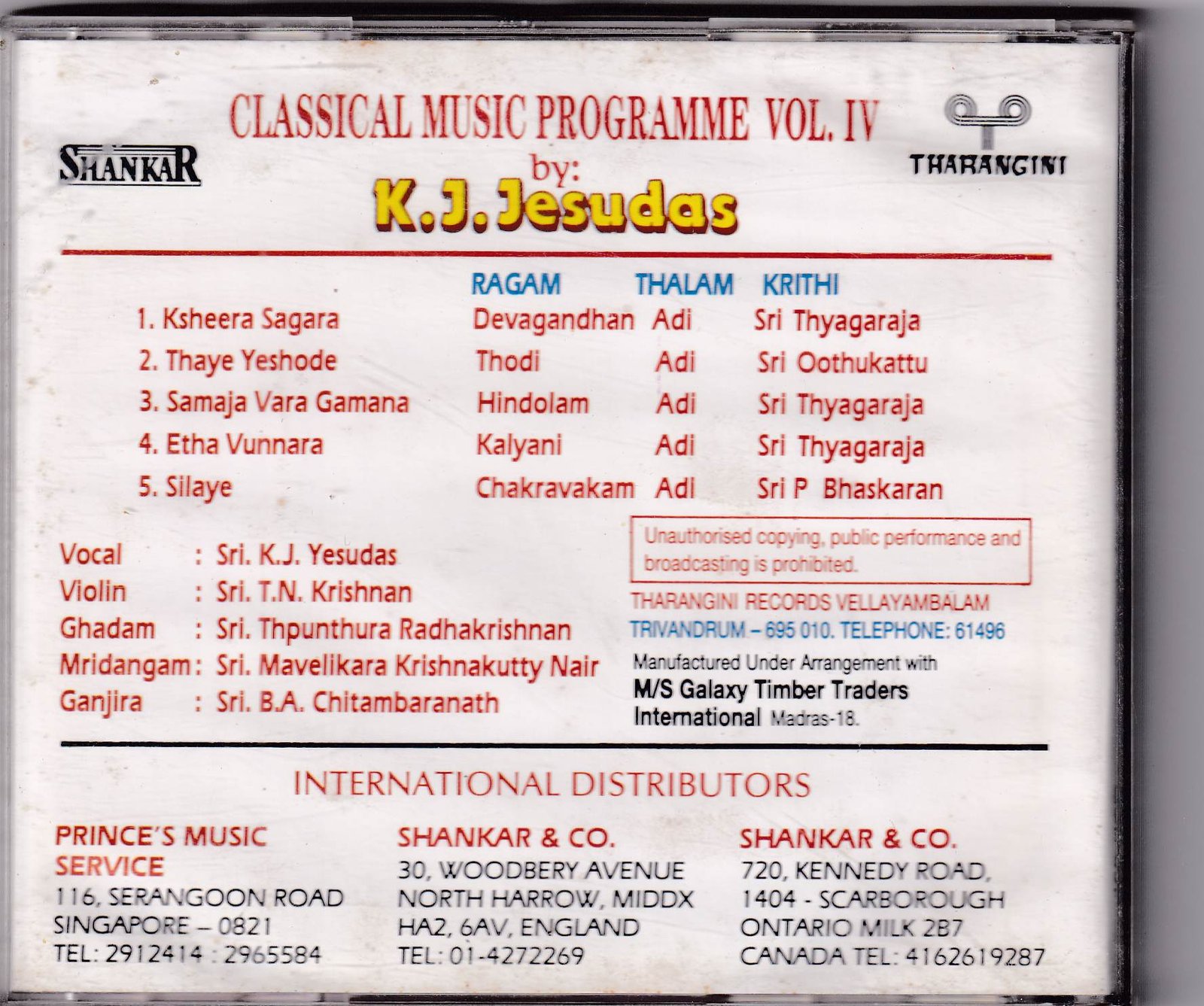 Title: Classical Music Programme Vol. IV by KJ Yesudas