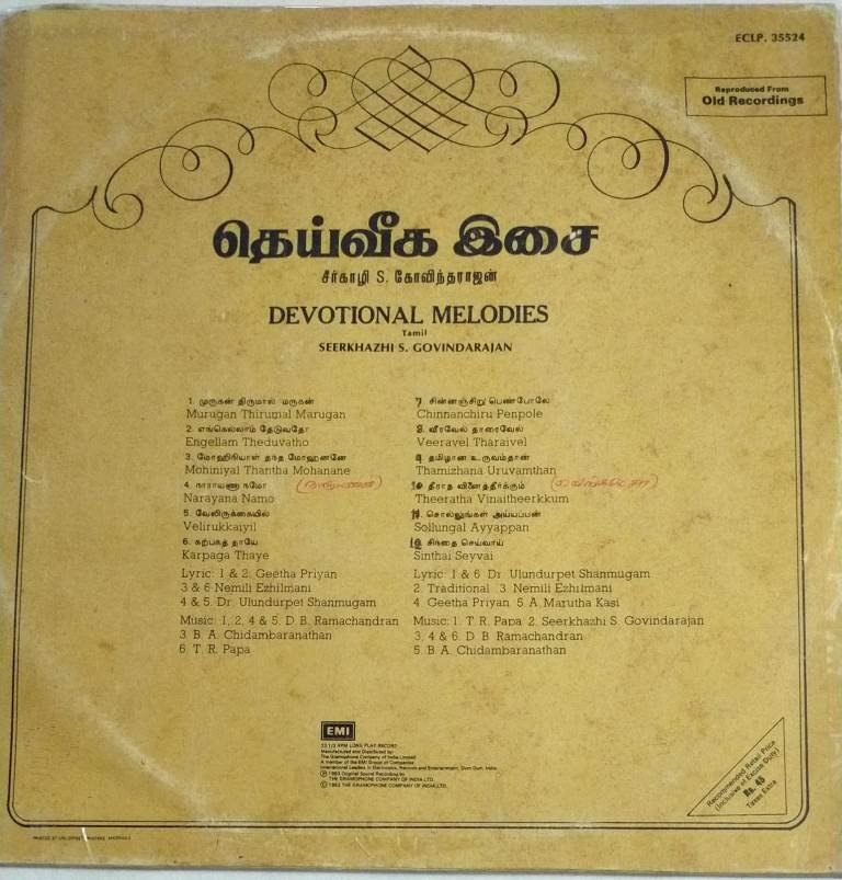 Deiveega Isai Devotional songs Tamil LP Vinyl Record by Seerkazhi S Govindarajan