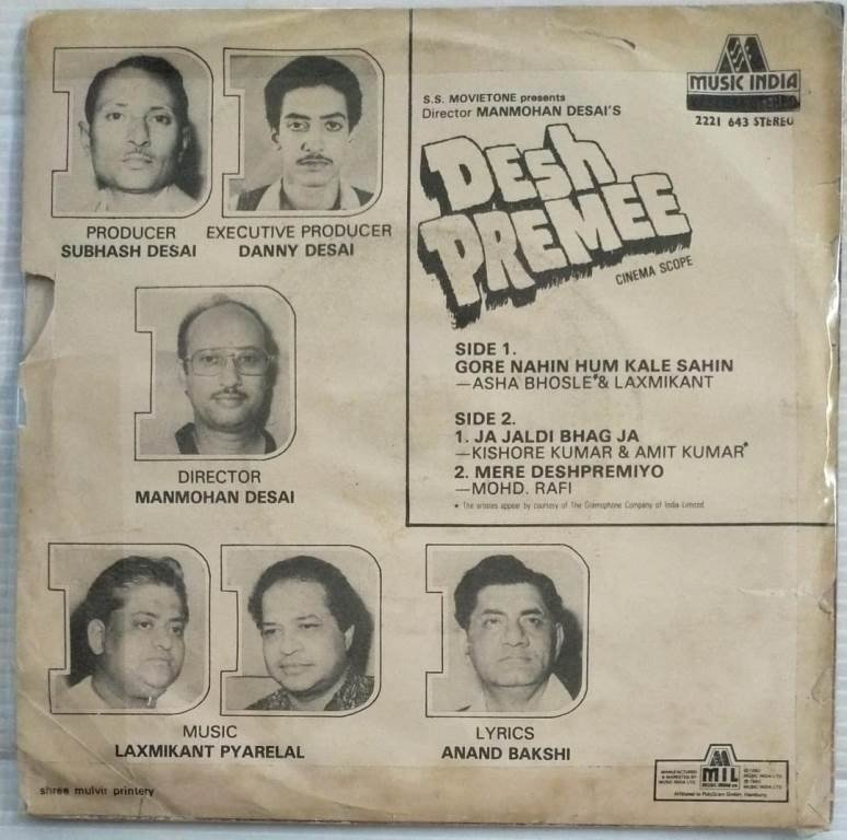 Desh Premee Hindi Film Songs EP Vinyl Record by Laxmikant Pyarelal