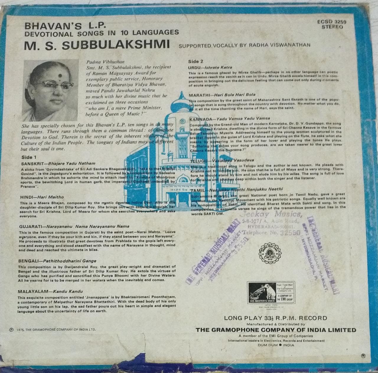 Devotional Songs in 10 Languages LP Vinyl Record by MS Subbulakshmi