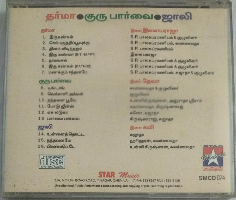 Dharma-Jolly- Guru Paarvai Tamil Film Audio CD