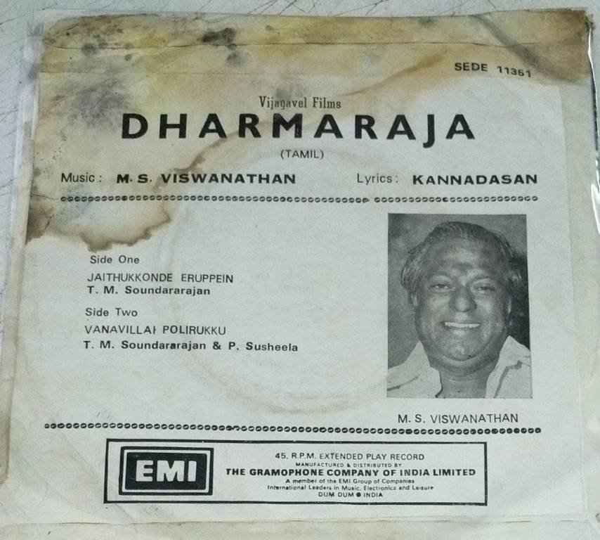 Dharmaraja Tamil Film EP Vinyl Record by M S Viswanathan