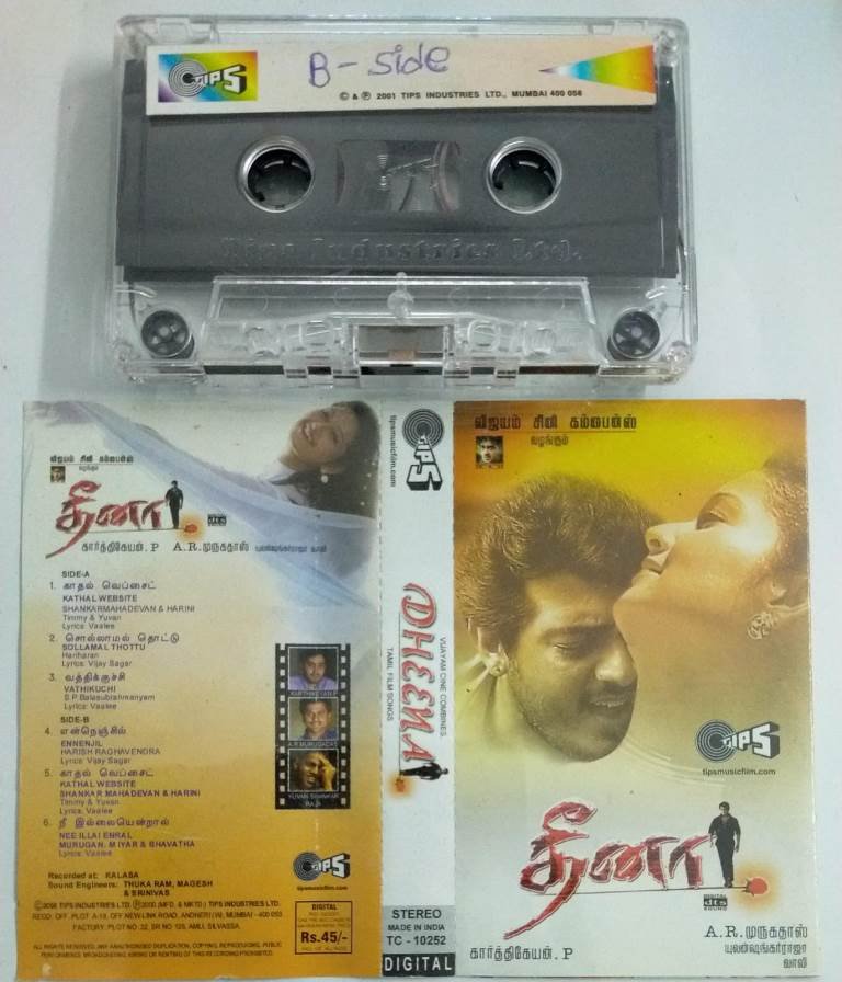 Dheena Tamil Film Audio Cassette by Yuvan Shankar Raja