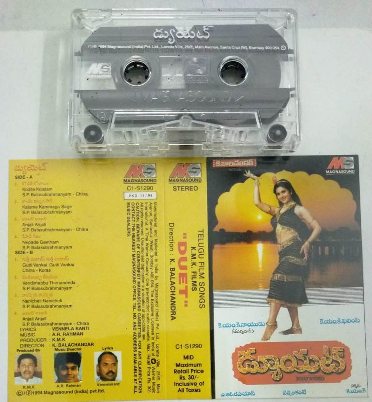 Duet Telugu Film Audio Cassette by AR Rahman