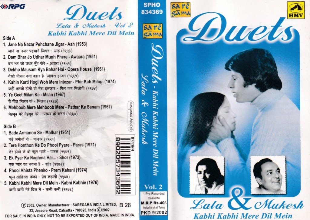 Duets Hindi Film hits Audio Cassette by Lata – Mukesh