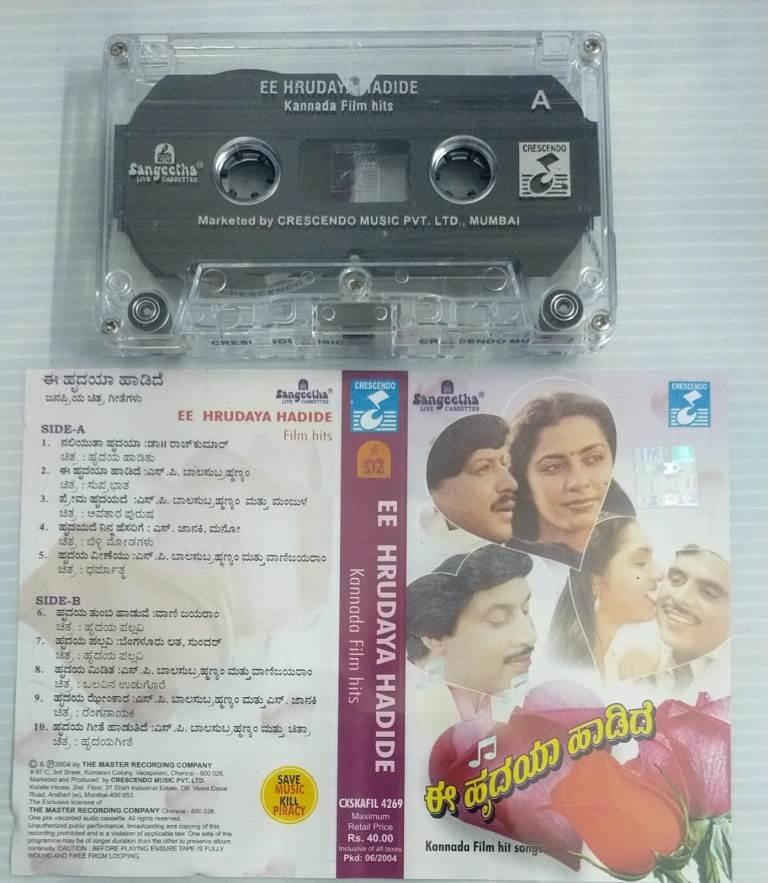 Ee Hrudaya Hadide Kannada film songs Audio Cassette