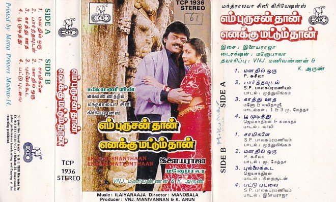 Em purusanthan Enakku mattumthan Tamil Film Audio Cassette by Ilayaraaja