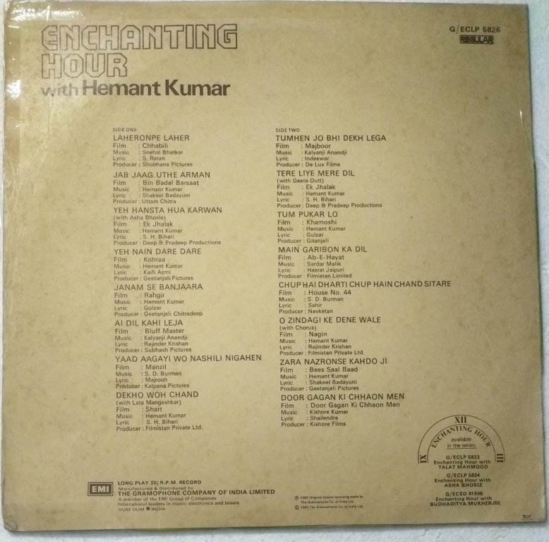 Enchanting Hour with Hemant Kumar Hindi Film songs LP Vinyl Record