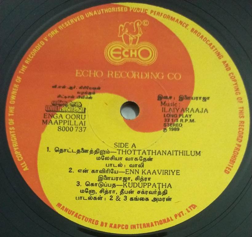 Enga Ooru Mapillai Tamil Film LP Vinyl Record by Ilayaraaja