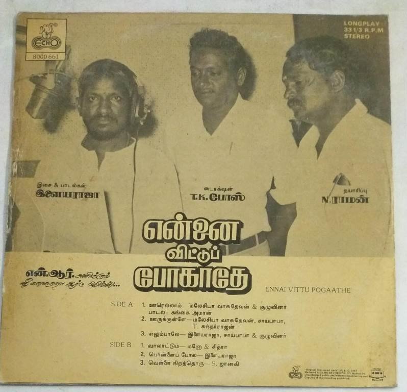 Ennai Vittu Pogaathe Tamil Film LP Vinyl Record by Ilayaraaja