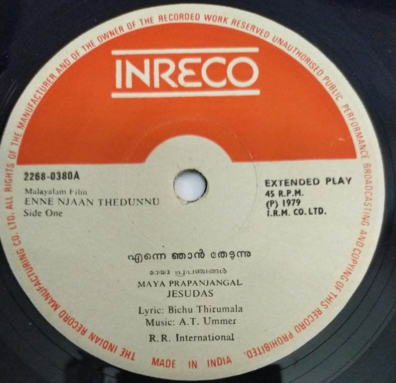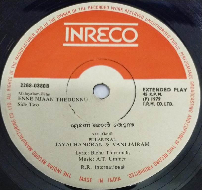 Enne Njaan Thedunnu Malayalam Film EP Vinyl Record by AT Ummar 2268-03808