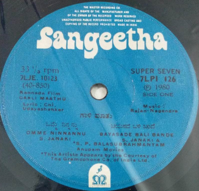 Gaali Maathu Kannada Film EP Vinyl Record by Rajan Nagendra 126