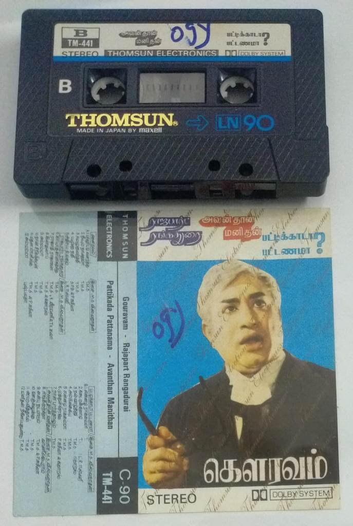 Gavravam- Rajapart Rangadurai- Avanthan Manithan- Pattikada Pattanama Tamil Film Audio Cassette (Thomsun make)