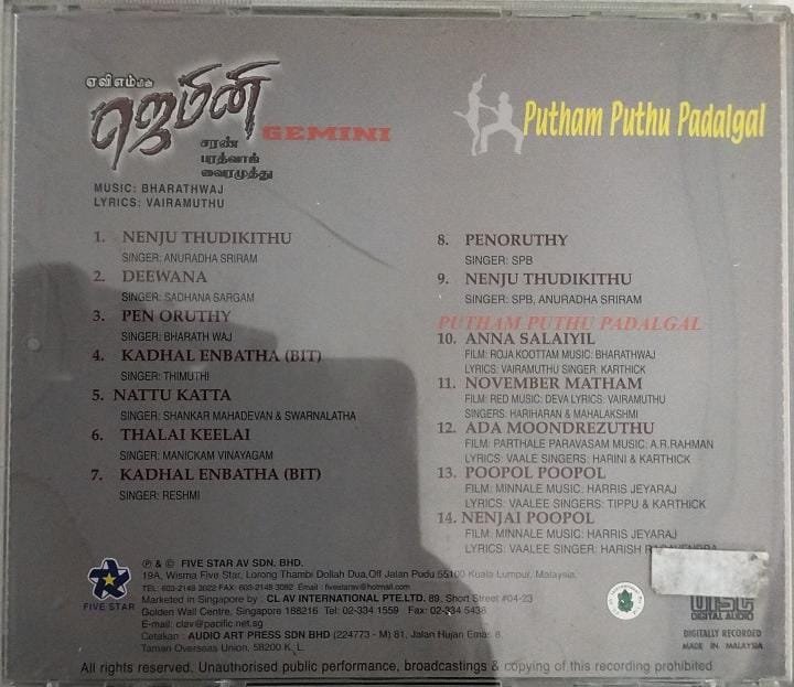 Gemini Tamil FIlm Audio CD by Bharadwaj