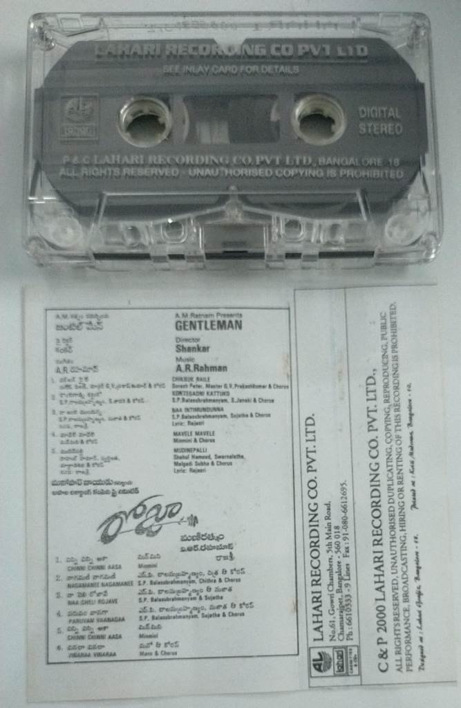 Gentleman- Roja Telugu Film Audio Cassette by AR Rahman