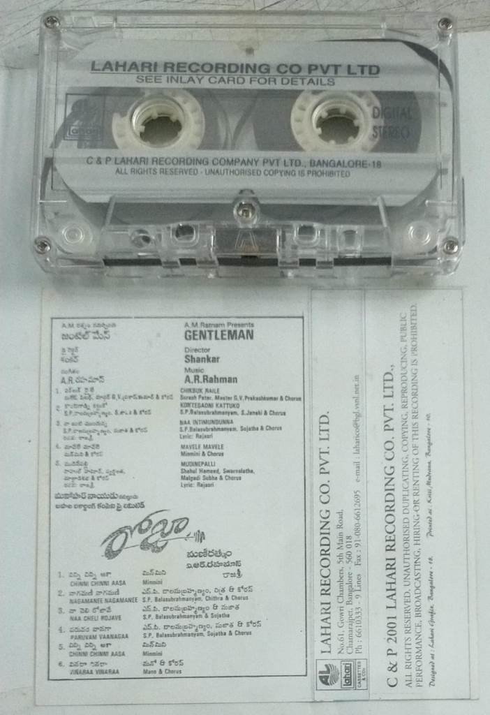 Gentleman Roja Telugu Film Audio Cassette by AR Rahman