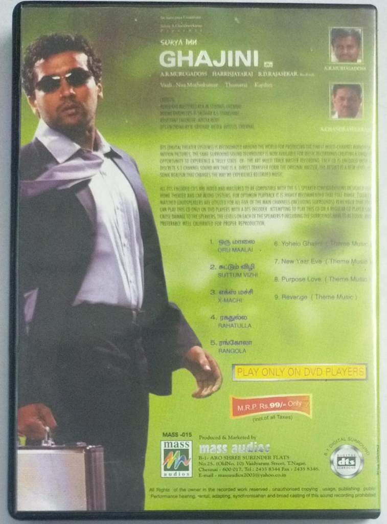 Ghajini Tamil Film 5.1 DVD Audio CD by Harrish Jayaraj