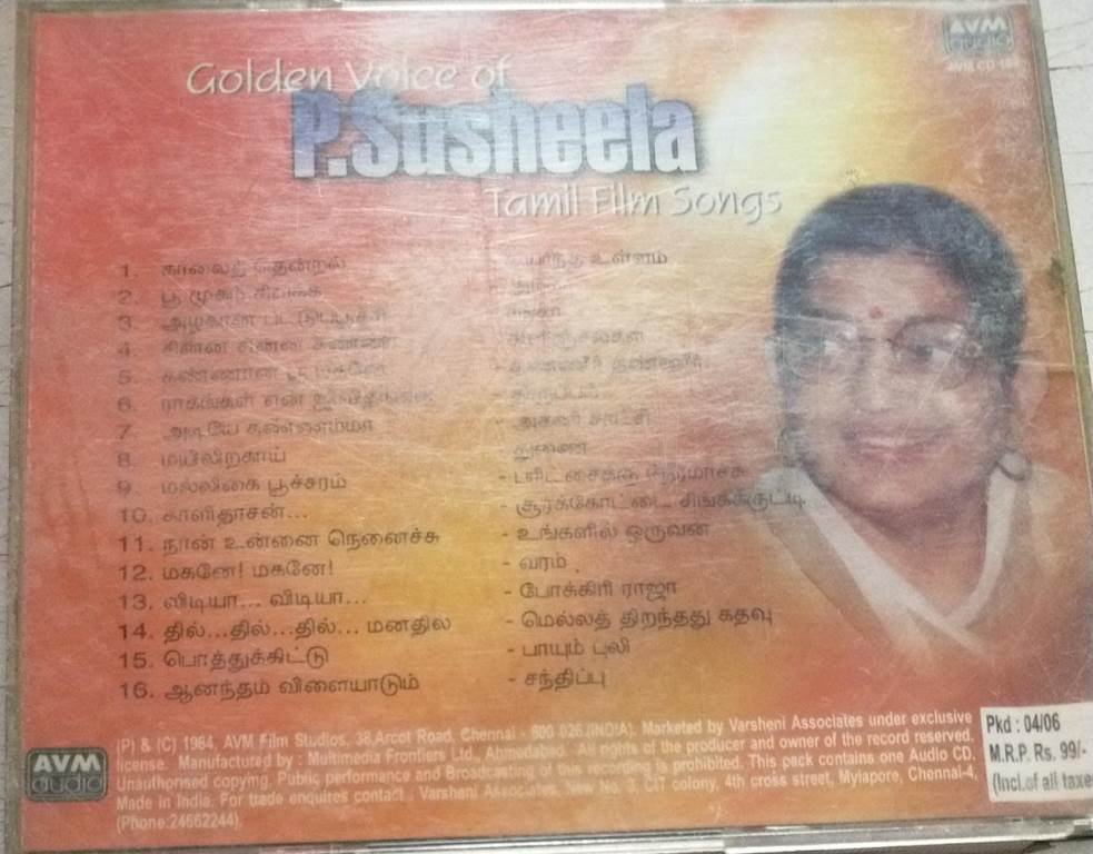 Golden Voice Of P Susheela Tamil Film songs Audio CD
