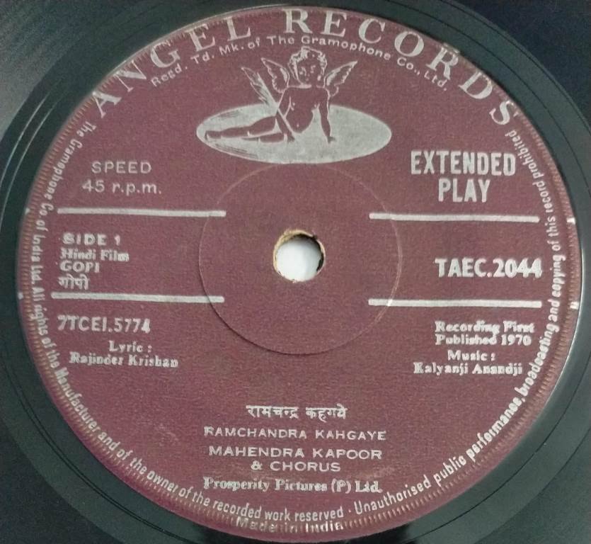 Gopi Hindi Film EP Vinyl Record by Kalyanji Anandji 2044