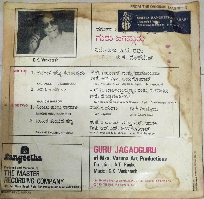 Guru Jagadguru Kannada Film EP Vinyl Record by G K Venkatesh