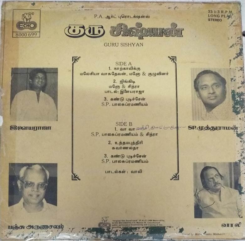 Be the first to review “Guru Sishyan Tamil FIlm LP Vinyl Record by Ilayaraja”