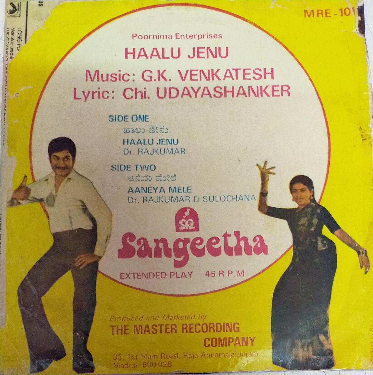 Haalu Jenu Kannada Film EP Vinyl Record by G K Venkatesh