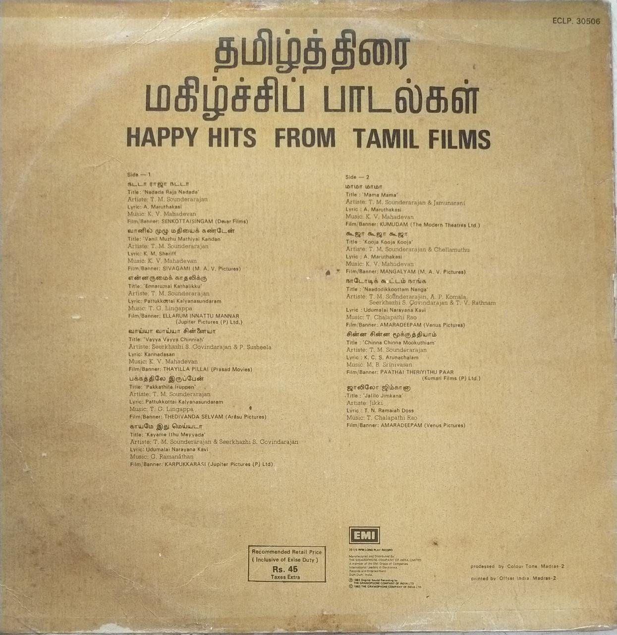 Tittle :Happy Hits from Tamil Films