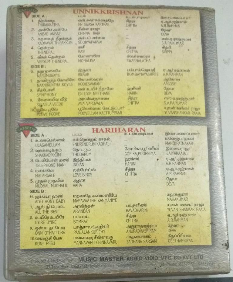 Hariharan and Unnikrishnan Best of Both Tamil film songs Audio Cassette ( 2 Cassettes pack)