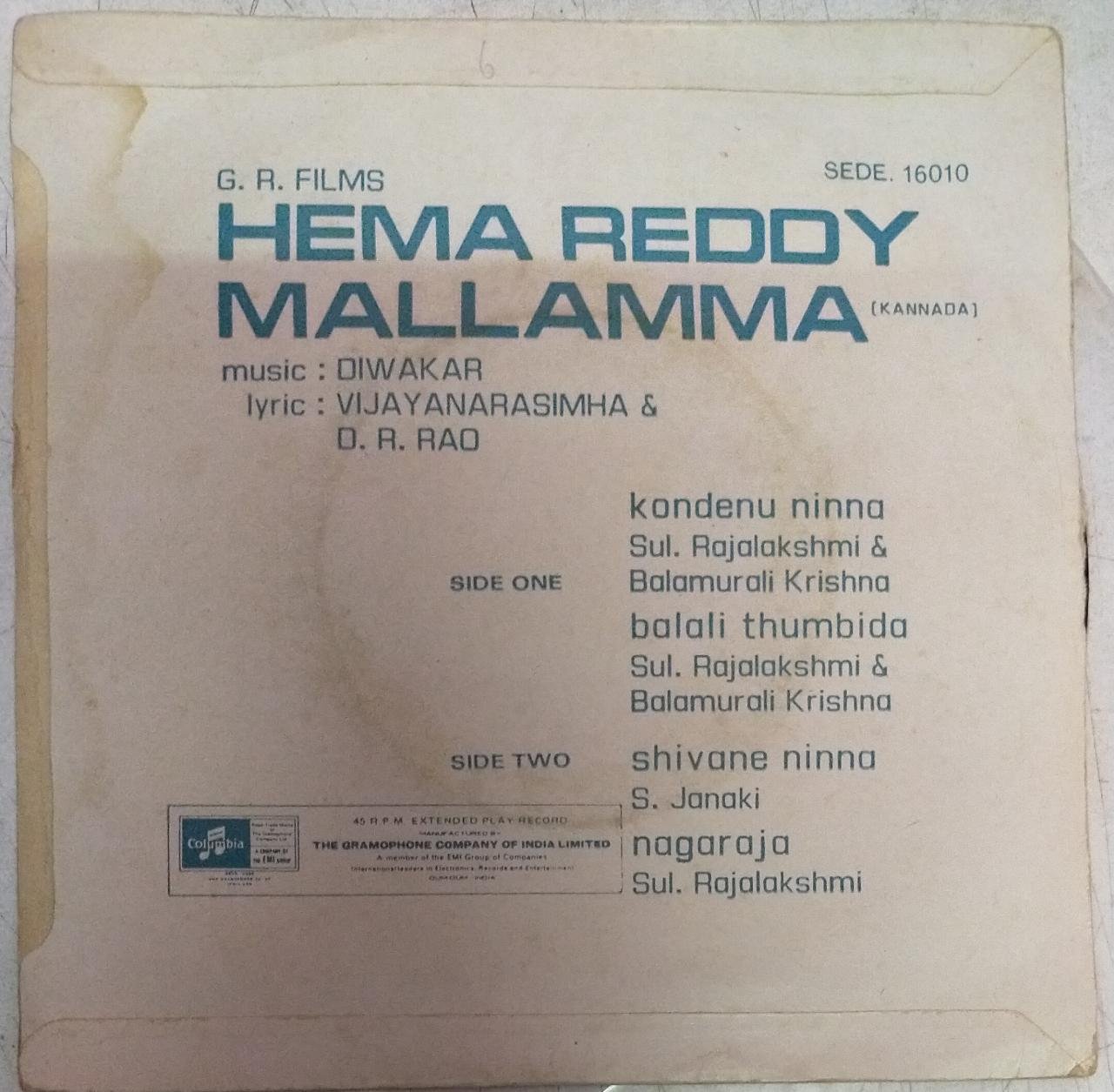 Hema Reddy Mallamma Kannada film EP Vinyl Record by Diwakar