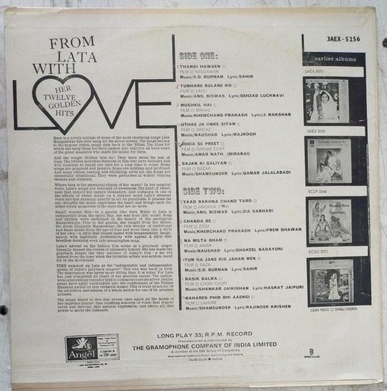 Hits from Hindi Films sung by Lata LP Vinyl Record