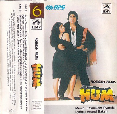 Hum Hindi Film Audio Cassette by Laxmikanth Pyarelal
