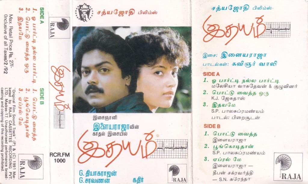 Idhayam Tamil Film Audio Cassette by Ilayaraaja