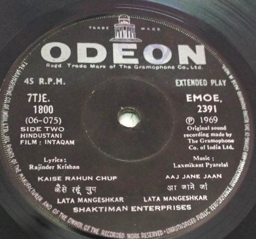 Intaqam Hindi Film EP Vinyl Record by Laxmikant Pyarelal