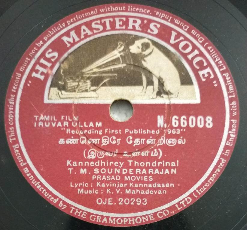 Iruvar Ullam Tamil Film 78 RPM Gramophone record N 66008