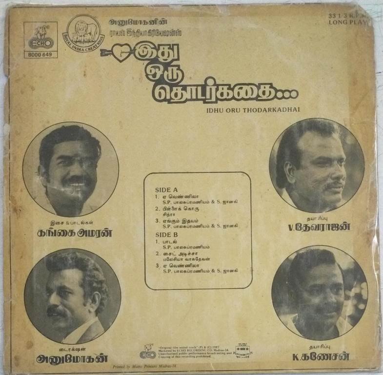 Ithu Oru Thodarkathai Tamil Film LP Vinyl Record by Gangai Ameran