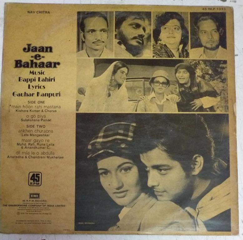 Jaan-e- Bahaar Hindi Film LP Vinyl Record by Bappi Lahiri
