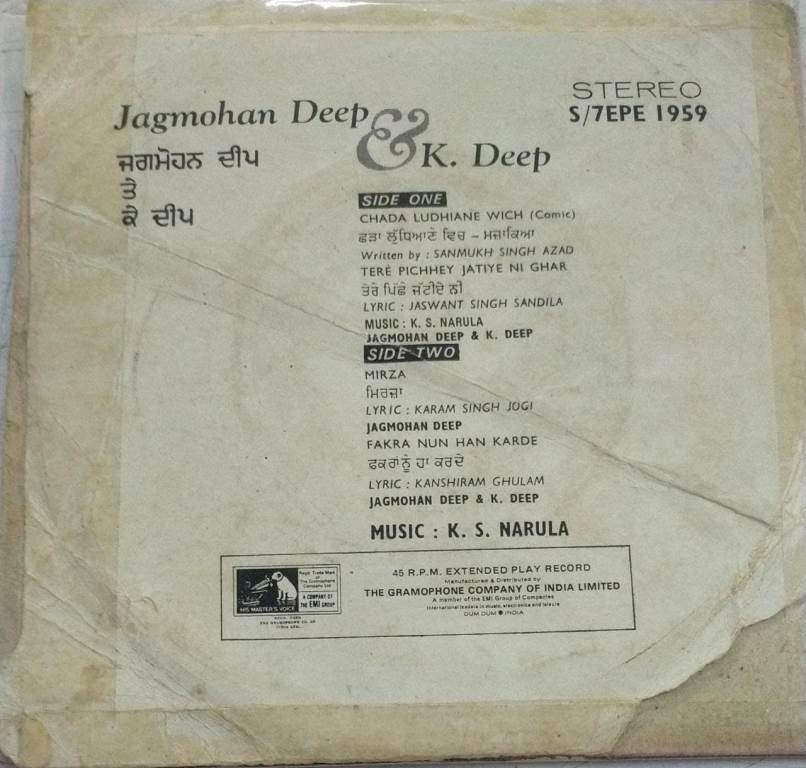 Jagmohan Deep & K Deep Hindi Film EP Vinyl Record by K S Narulla