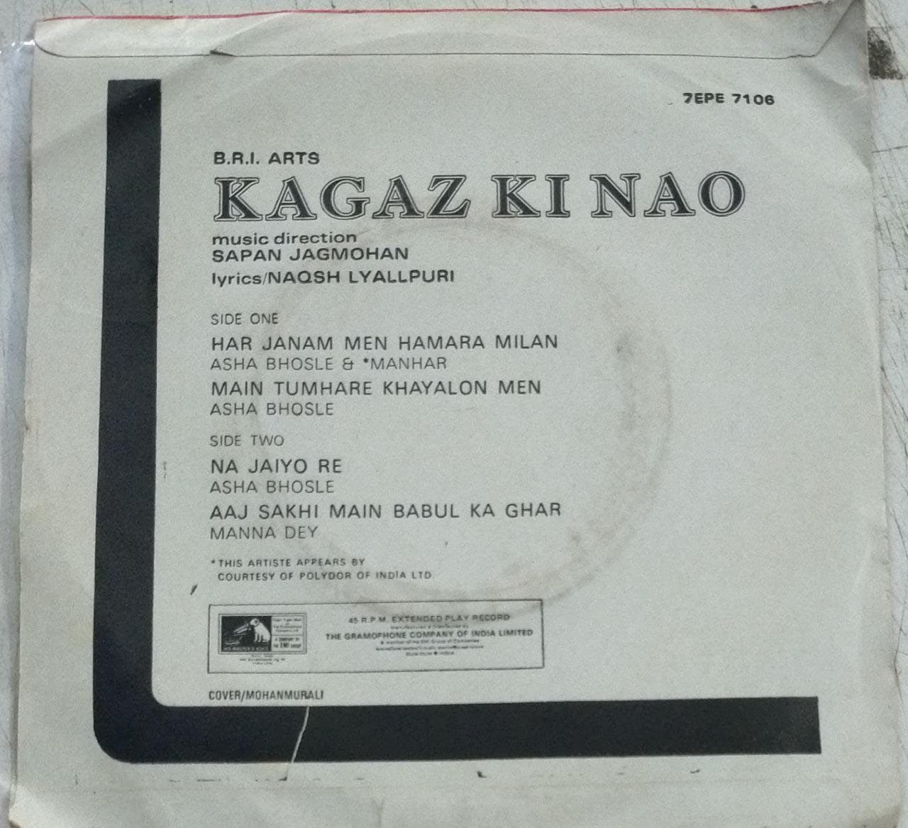 Kagaz Ki Nao Hindi Film EP Vinyl Record by Sapan Jagmohan