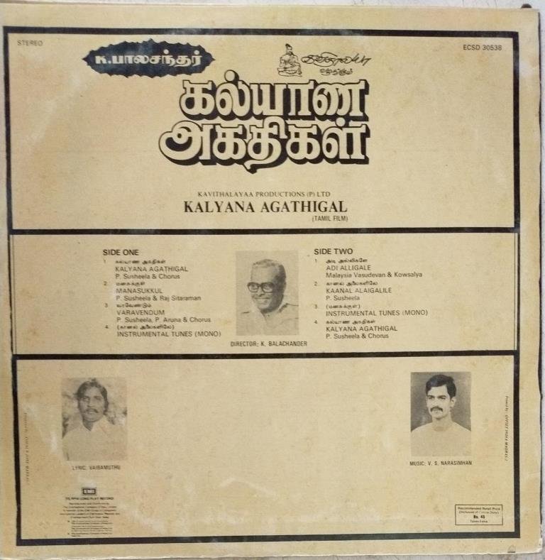 Kalyana Agathigal Tamil Film LP Vinyl Record by V S Narasimhan