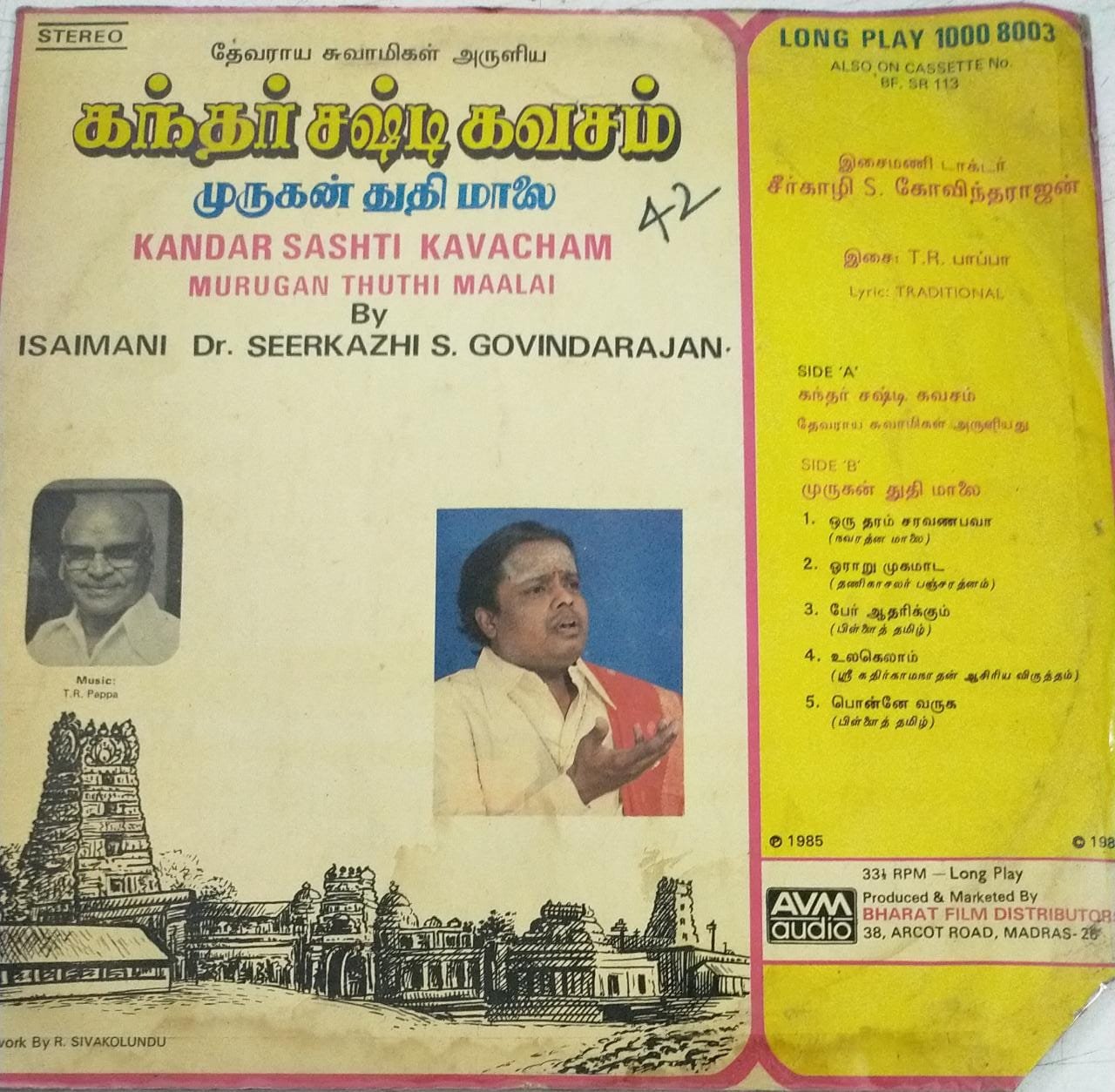 Kandhar Sasti Kavacham Tamil Devotinal songs LP Vinyl Record by Seerkhazhi S Govindarajan