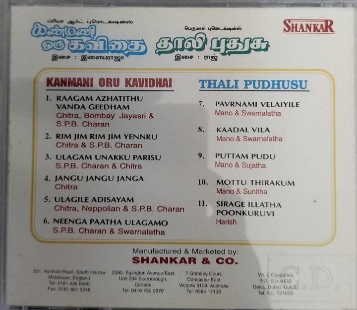 Kanmani Oru Kavithai – Thaali Pudhusu – Tamil Audio CD by Ilayaraaja – Raj