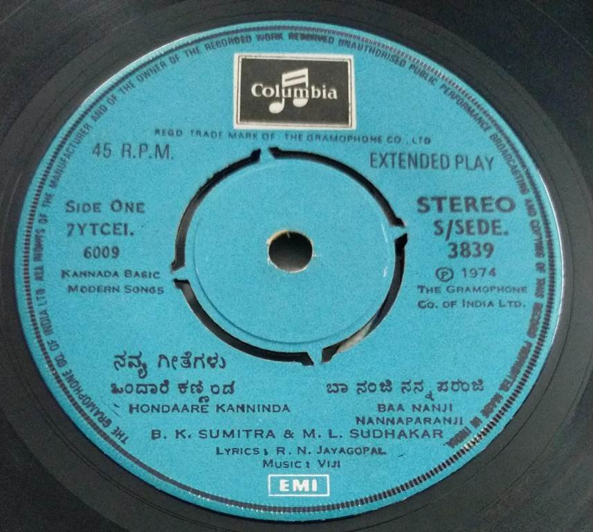 Kannada Devotional songs EP Vinyl Record 3839