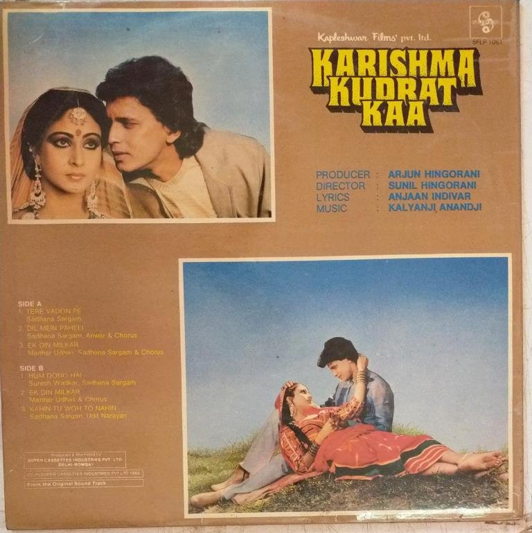 Karishma Kudrat Kaa Hindi Film LP Vinyl Record by Kalyaji Anandji